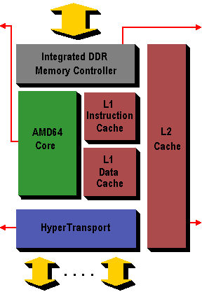 This means that motherboard’s no longer need a separate Northbridge chip. Furthermore, with it now redundant, the concept of the FSB also disappears, along with the system bottlenecks it creates. Instead, the K8 architecture uses serial HyperTransport links to connect the CPU to external chips such as a Southbridge, AGP controller or another CPU. This allows the memory controller to run at the full speed of the processor. While this is still 400MHz, the integration leads to reduced latencies and increased memory performance.