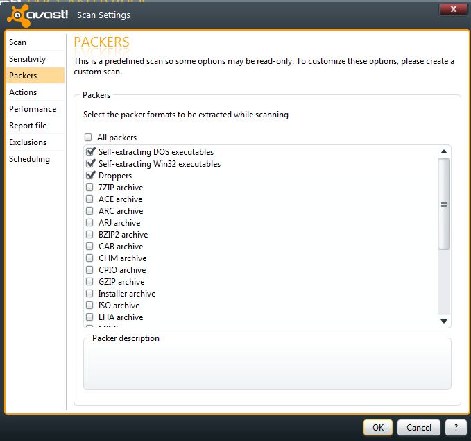 Avast will scan numerous compressed files, zip files and other types of archives.