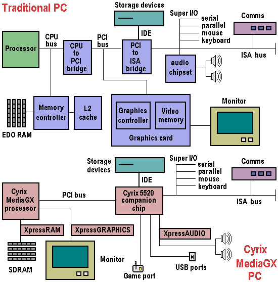 - XpressGRAPHICS technology eliminated the need for a graphics card. In a traditional PC, graphics are processed away from the main CPU through the slower PCI bus. However, with the graphics controller and accelerator moved onto the MediaGX processor, graphics processing took place at the full megahertz speed of the CPU. XpressGRAPHICS also implemented an innovative graphics compression scheme with high-speed buffering, allowing flexibility in memory configuration without the need to add expensive video memory.