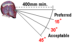 Whilst the quality of the monitor and graphics card, and in particular, the refresh rate at which the combination can operate is of crucial importance in ensuring that users spending long hours in front of a CRT monitor can do so in as much comfort as possible, it is not the only factor that should be considered. Physical positioning is also important, and expert advice has recently been revised in this area. Previously it had been thought that the centre of the monitor should be at eye level. It is now believed that to reduce fatigue as much as possible, the top of the screen should be at eye level, with the screen between 0 and 30 degrees below the horizontal and tilted slightly upwards. However, seeking to achieve this arrangement with furniture designed in accordance with the previous rules is not that easy to achieve, however, without causing other problems with respect to seating position and, for example, the comfortable positioning of keyboard and mouse. It is also important to sit directly in front of the monitor rather than to one side, and to locate the screen so as to avoid reflections and glare from external light sources.