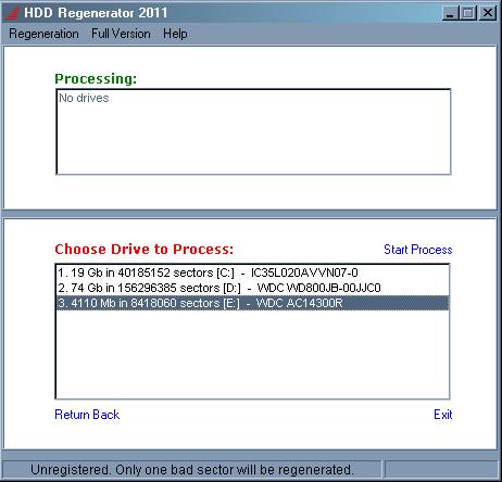 HDD Regenerator scans and attempts to repair any bad sectors on a given hard drive.