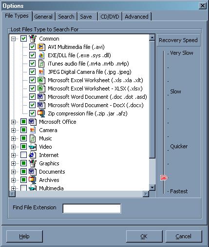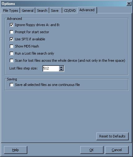 In the “Options” section, you can define better what you want to search for. While it will take more time to search with more options used, sometimes that is how you recover the most information.