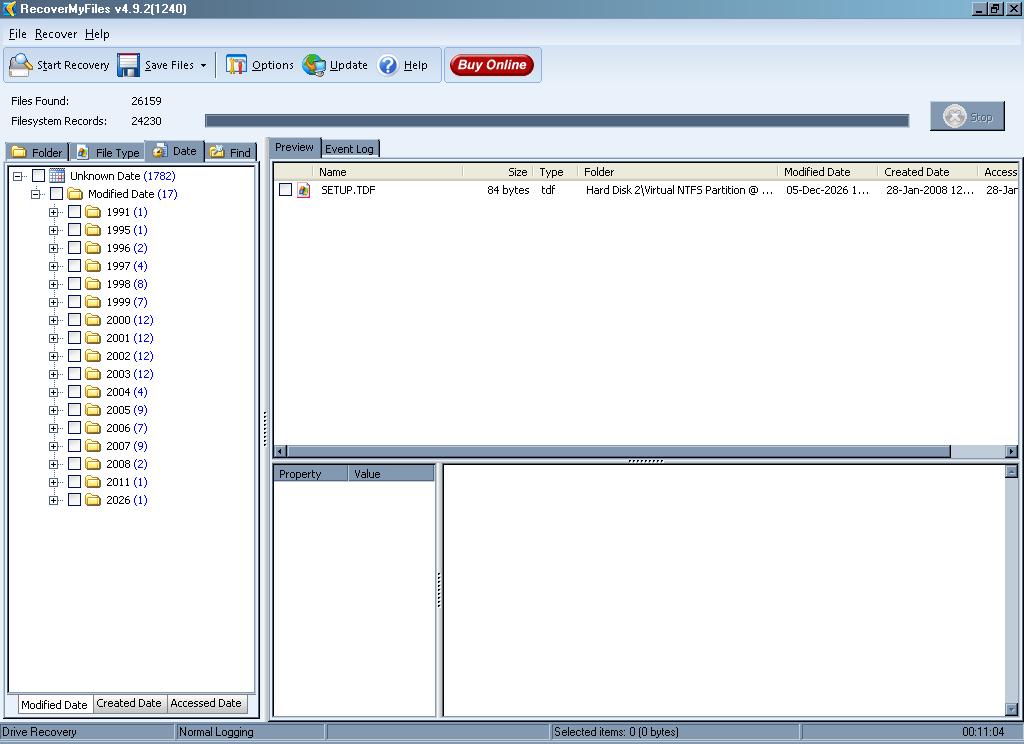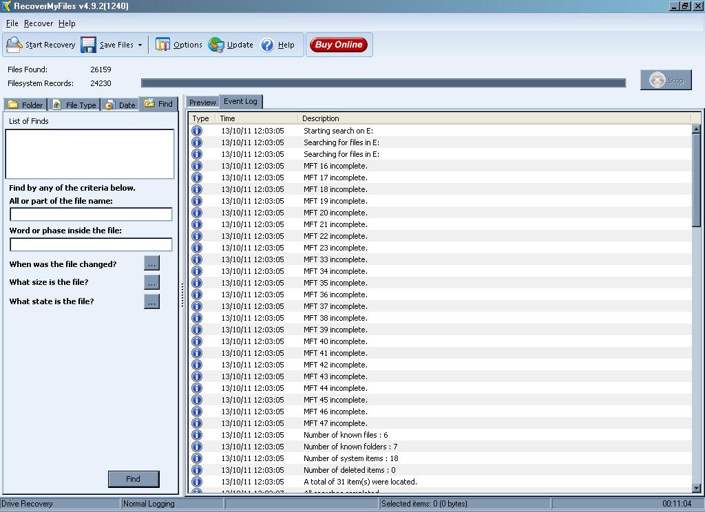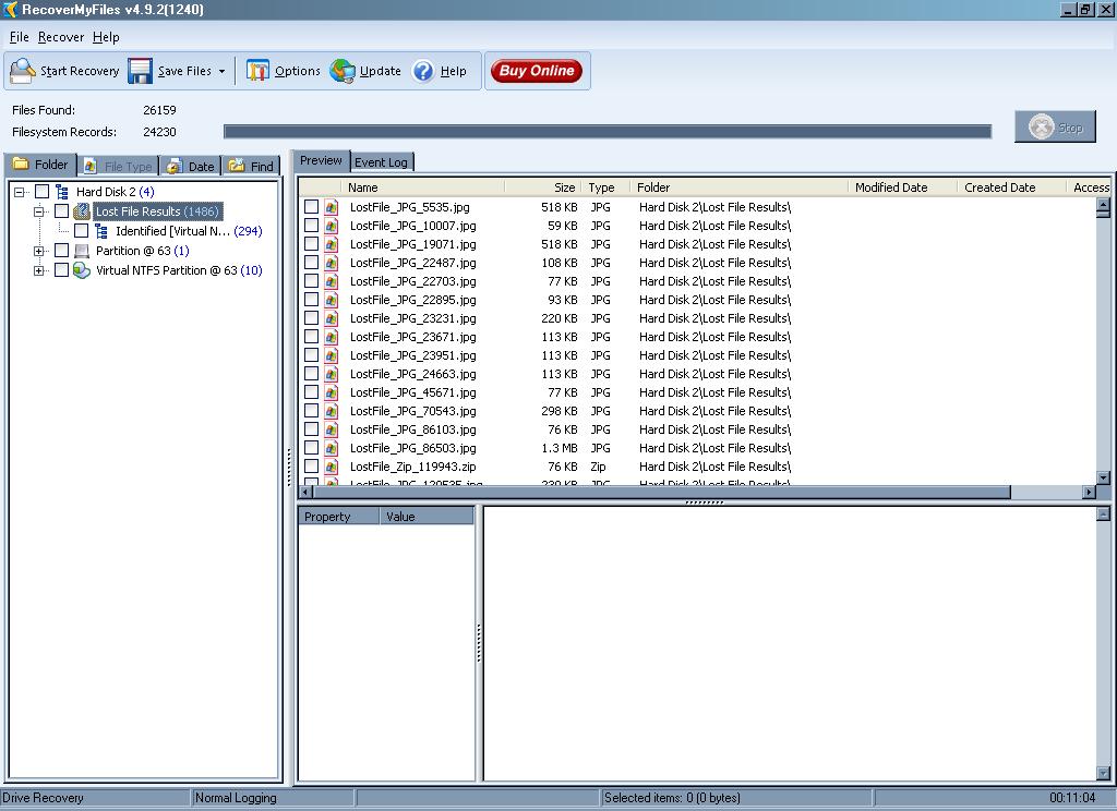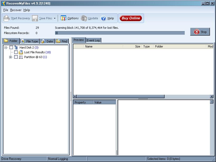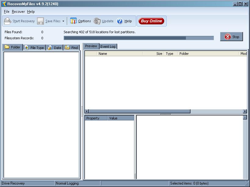 It hadn’t restored the partition, but Recover My Files was still searching for lost data.