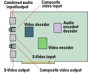Video output sockets are provided to allow video sequences to be recorded back to tape and some cards also allow video to be played back either on a computer monitor or TV. Less sophisticated cards require a separate graphics adapter or TV tuner card to provide this functionality.