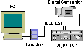 Despite all their advantages, DV files are still fairly large, and therefore need a fast interface to facilitate the their transfer from the video camera to a PC. Fortunately, the answer to this problem has existed for a number of years. The FireWire interface technology was originally developed by Apple Computers, but has since been ratified as international standard IEEE 1394. Since FireWire remains an Apple trademark most other companies use the IEEE 1394 label on their products; Sony refer to it as i.LINK. When it was first developed, digital video was in its infancy and there simply wasn’t any need for such a fast interface technology. So, for several years it was a solution to a problem which didn’t exist. Originally representing the high end of the digital video market, IEEE 1394 editing systems have gradually followed digital camcorders into the consumer arena. Since DV is carried by FireWire in its compressed digital state, copies made in this manner ought, in theory, to be exact clones of the original. In most cases this is true. However, whilst the copying process has effective error masking, it doesn’t employ any error correction techniques. Consequently, it’s not unusual for video and audio dropouts to be present after half a dozen or so generations. It is therefore preferred practice to avoid making copies from copies wherever possible.