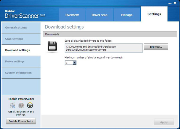 “Download Settings” specifies where the drivers should be downloaded to, along with how many drivers should be downloaded at the same time.