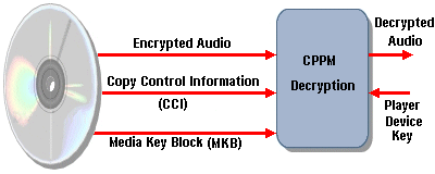 It allows for a hacked playback device to be revoked using a Media Key Block (MKB). The MKB contains a very large number of keys and is unique for every DVD-Audio title. Each licensed decoder model has assigned to it a set of unique device keys that allow it to obtain the Media Key (used to encrypt the audio content) from the MKB and decrypt the audio content. Any playback device can be revoked in future discs via the MKB.