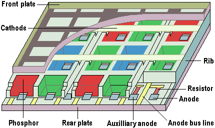Plasma Display Panels (PDPs) are like CRTs in that they are emissive and use phosphor, and like LCDs in their use of an X and Y grid of electrodes separated by an MgO dielectric layer and surrounded by a mixture of inert gases – such as argon, neon or xenon – to address individual picture elements.