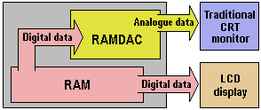 When LCD panels first emerged, they connected to a graphics card via its VGA connector. This, of course, required that the graphics card first to convert the signal to analogue via its RAMDAC. Since LCDs are – unlike CRT monitors, fundamentally digital in nature, the analogue signal is immediately reconverted to digital. The internal circuitry needed to do this increases the cost of LCD displays, impinges on image quality – particularly in the area of colour accuracy – and presents synchronisation issues that can be difficult to adjust on some graphics adapters. Whilst entirely digital LCD displays promised a better, more reliable image, they also required a new connector and internal circuitry on the graphics card.
