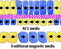 Known technically as antiferromagnetically-coupled (AFC) media, the new multilayer coating is expected to permit hard disk drives to store 100 billion bits (gigabits) of data per square inch of disk area by 2003 and represents the first fundamental change in disk drive design made to avoid the high-density data decay due to the superparamagnetic effect. Conventional disk media stores data on a single magnetic layer. AFC media’s two magnetic layers are separated by an ultra-thin layer of ruthenium. This forces the adjacent layers to orient themselves magnetically in opposite directions. The opposing magnetic orientations make the entire multilayer structure appear much thinner than it actually is. Thus small, high-density bits can be written easily on AFC media, but they will retain their magnetisation due to the media’s overall thickness.