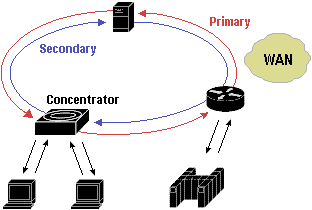 FDDI uses a dual ring topology, which is to say that it is comprised of two counter-rotating rings. During normal operation, the primary ring is used for data transmission, and the secondary ring remains idle. The primary purpose of the dual rings is to provide superiorreliability and robustness.