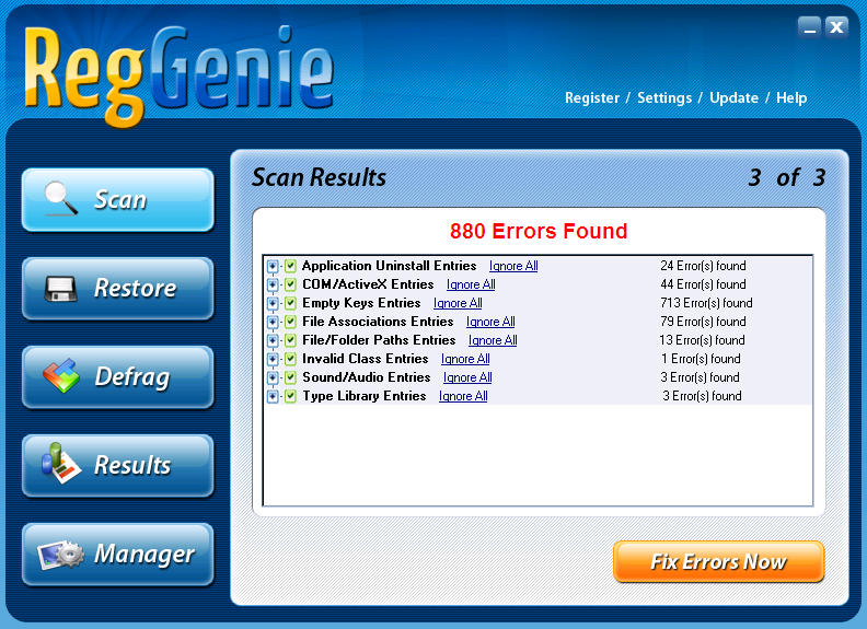 From start to finish, RegGenie only took about 3 minutes to scan the registry.