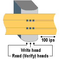 QIC tape uses an erase head – capable of erasing the full width of a tape in a single pass – and a linear read/write head similar to those found in domestic cassette recorders. Typically this comprises a single write head flanked on either side by a read head. This allows the tape drive to verify data just written when the tape is running in either direction. If the data just written is verified by the read head, the buffer is flushed out and new data is acquired from the system memory. If errors are found, the segment is rewritten on the next length of tape.