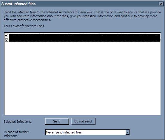 After I cancelled the scan, it asked if I wanted to submit two of the suspected files in question. Needless to say, I declined.