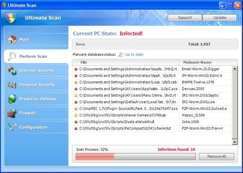 Step 3. Run an anti-virus scan. This is a very important step that should not be treated lightly. In most cases Ultimate Scan is installed by other forms of malware, reason why without a professional antivirus scanner it will not be possible to fully remove Ultimate Scan. We recommend one the following antivirus clients: Spyware Doctor with Antivirus, or Malwarebytes. Install them and purchase the license key of any of them, depending on personal budget and preference. It is recommended to always have an antivirus client installed and updated in order to protect your PC from similar incidents.