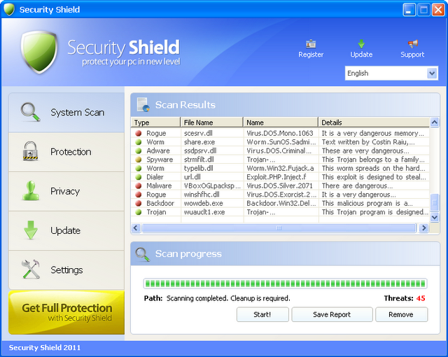 Using Anti-Virus Clients to Remove Security Shield 2011